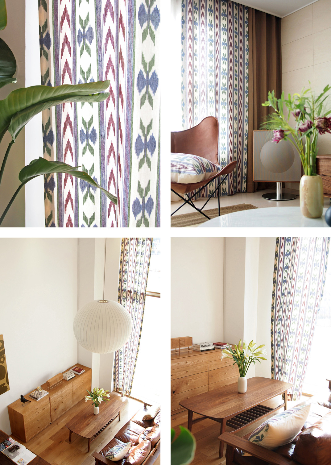 아키트에서 선보이는 핸드우븐 패브릭 100% 인도면 커튼입니다. 자연에서 영감을 받아 물체를 형상화한 패턴을 인도의 전통적인 수제직조방식으로 제작하여,