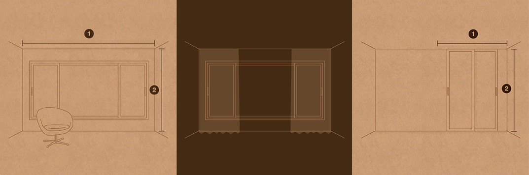 1. 커튼을 설치할 공간의 사이즈 ①가로, ②높이를 측정합니다. 아파트는 커튼 박스 안쪽까지 정확히 실측해 주세요.